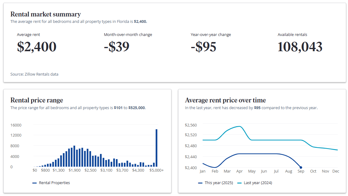 Source: Zillow: Average Rental Price in Florida - September 2025